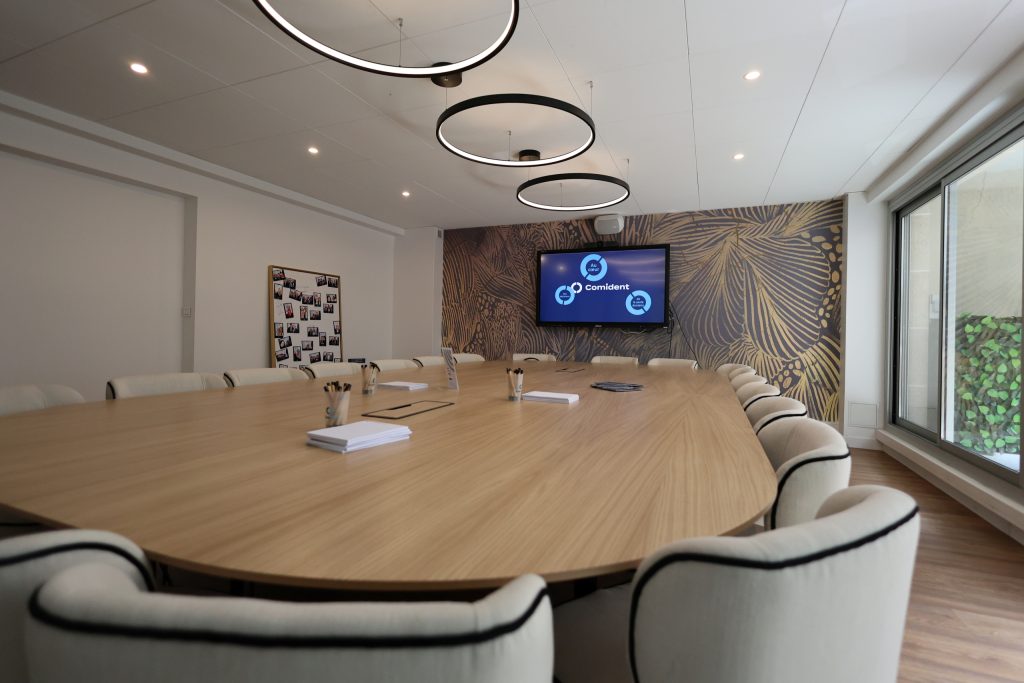 - une salle de réunion lumineuse et équipée (écrans, wifi, tableau…) pouvant accueillir jusqu’à 20 personnes en configuration assise